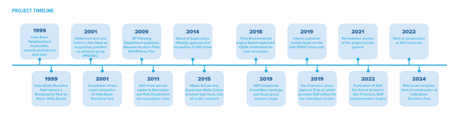 In 2014, the San Francisco Recreation and Park Department acquired the property at 900 Innes Avenue in India Basin, a site that features scenic views, waterfront access, and natural resources in San Francisco’s Bayview Hunters Point (BVHP) neighborhood.